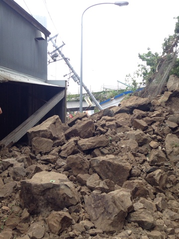 飯島に送りついでに、昨晩のがけ崩れの様子を見に行く。